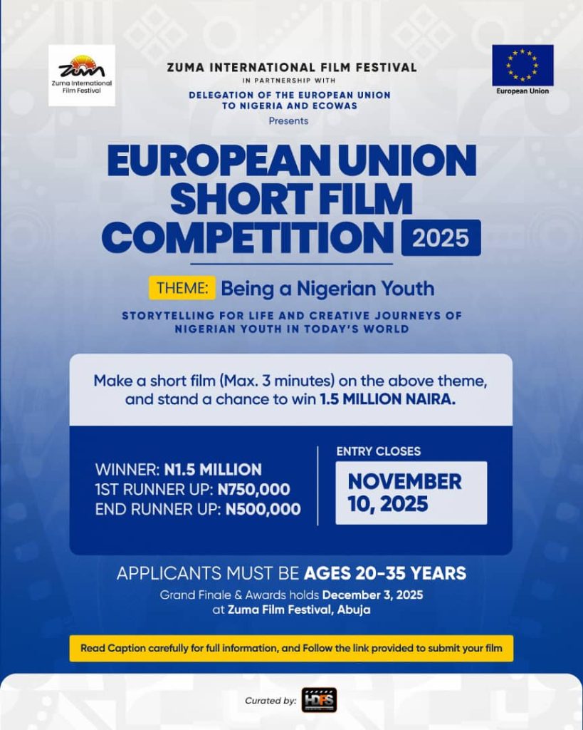 The European Union (EU) Delegation to Nigeria and ECOWAS, in collaboration with the Zuma International Film Festival, has launched the 2025 edition of the EU Short Film Competition, targeting emerging filmmakers in the country.